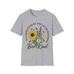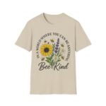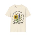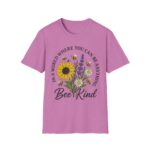 Our “Bee Kind” unisex softstyle T-shirt is more than just a comfy tee, it’s a message. Featuring a heartwarming floral bouquet with sunflowers, daisies, lavender, and buzzing bees, this shirt is a gentle reminder to spread compassion wherever you go.
