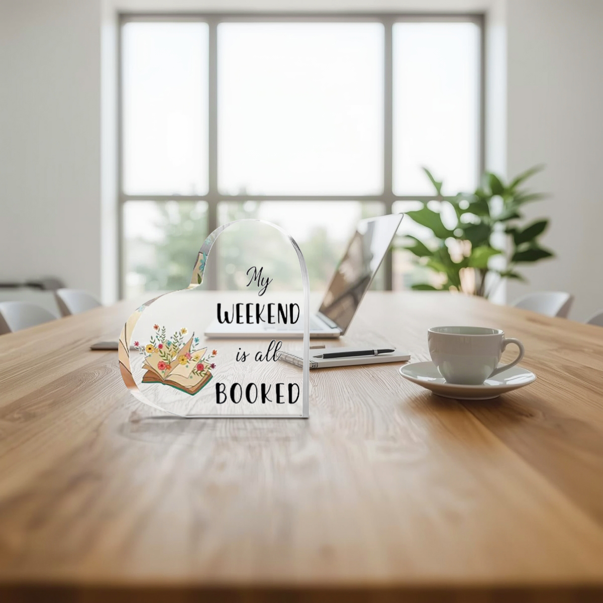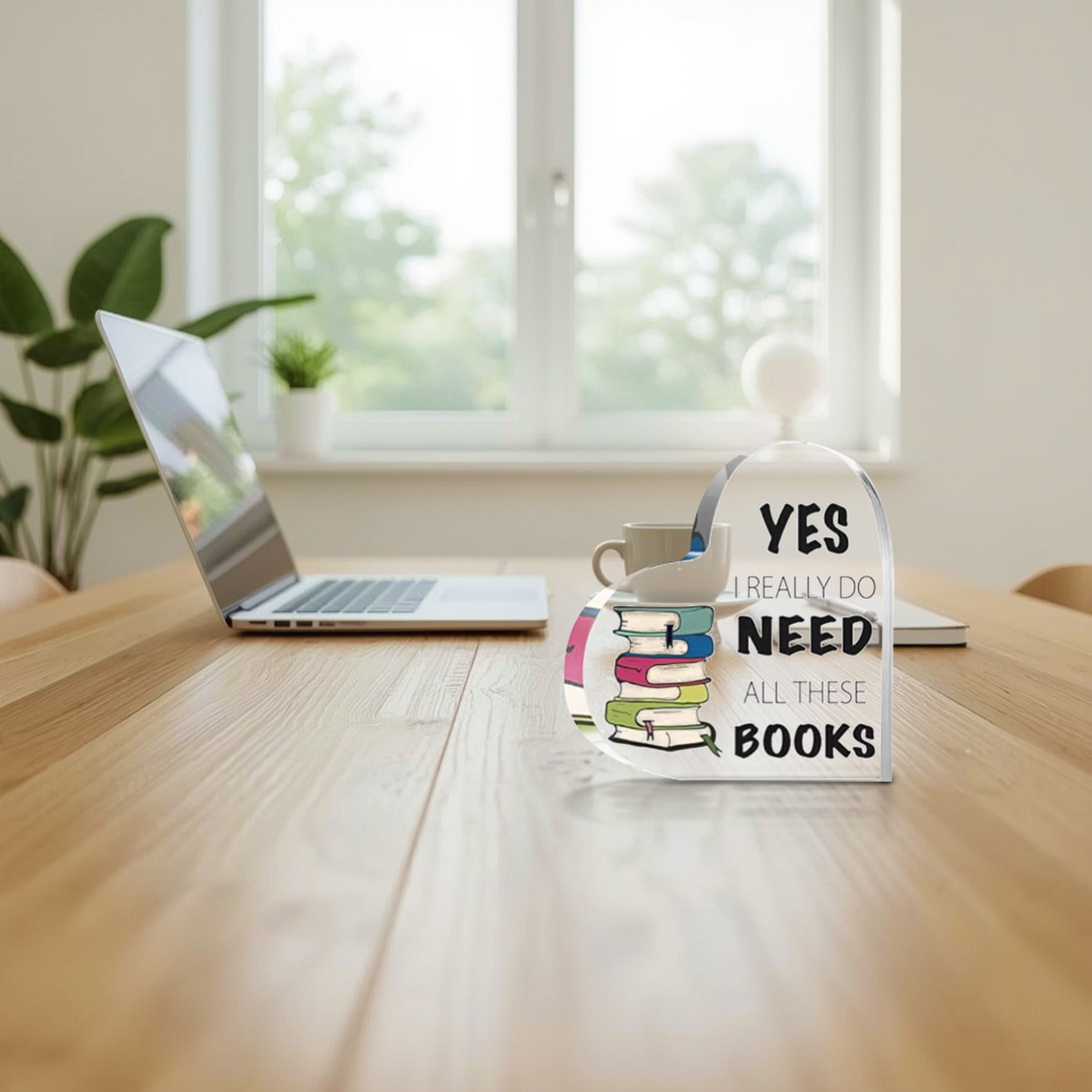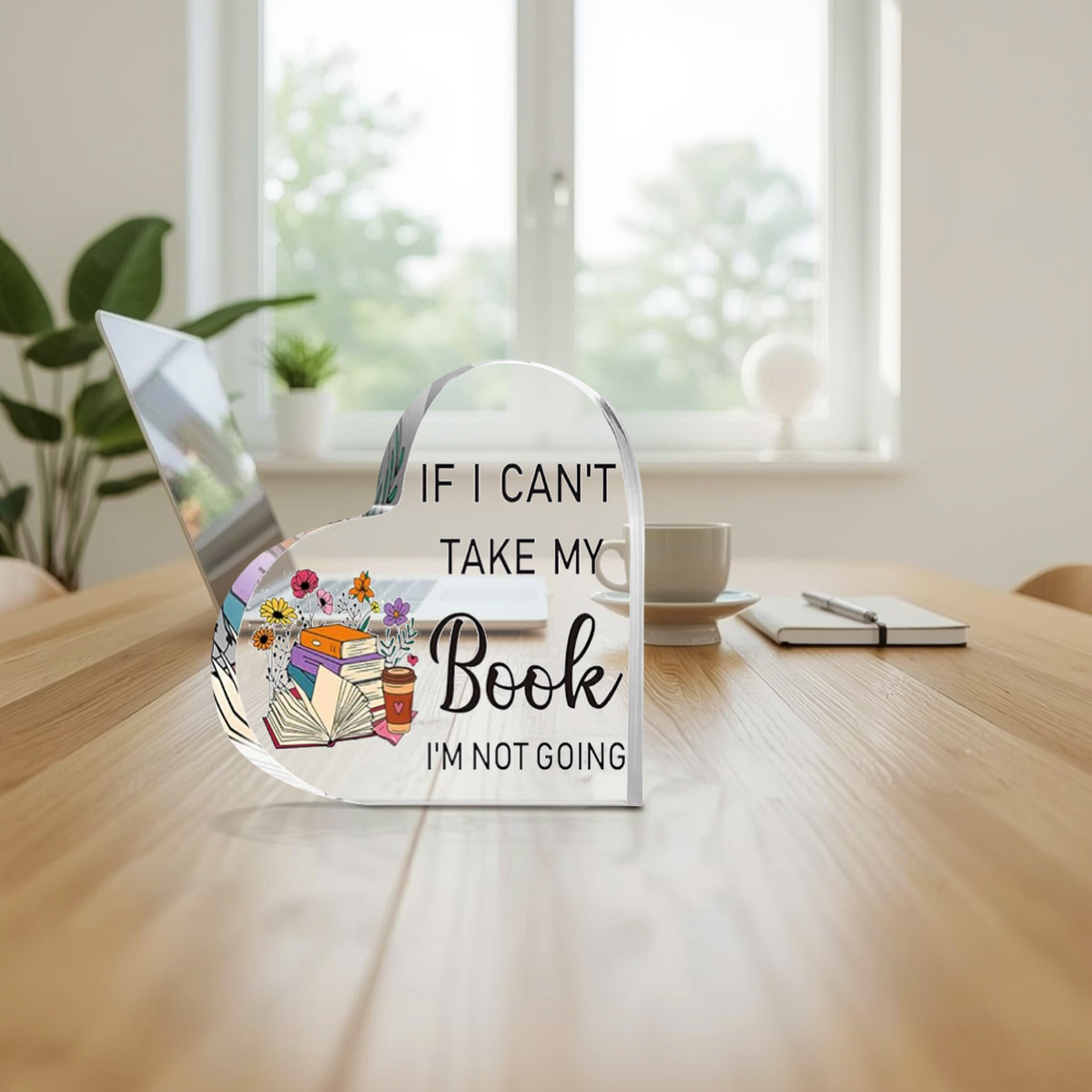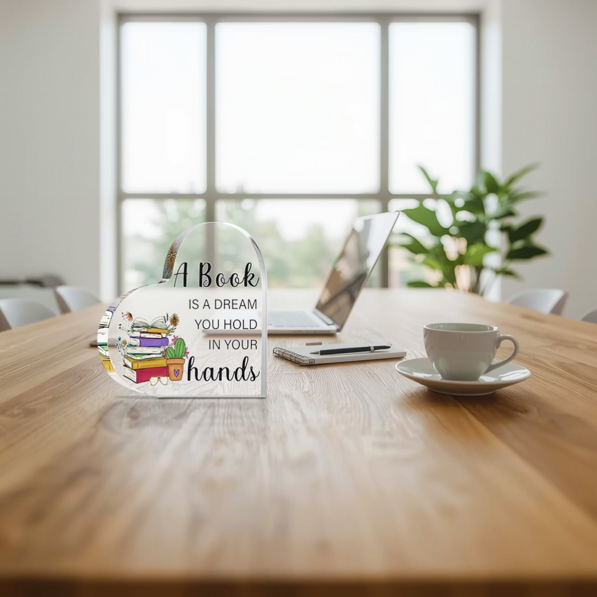 Celebrate the love of reading with this Book Lover Acrylic Heart Desk Sign. Designed with charming book-inspired illustrations and beloved reading quotes, this piece adds warmth, personality, and quiet joy to any desk, bookshelf, or reading nook.