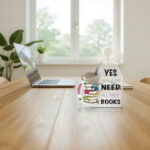 🎨 Charming Illustrations — Vibrant, book-themed artwork featuring stacked books, florals, cats, hourglasses, and reader-loved quotes printed on clear polished acrylic