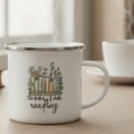 Set the tone for quiet mornings and late-night chapters with this cozy book-lover enamel mug, designed for readers who find comfort in stories and warm drinks. Featuring charming illustrations and playful phrases like Shhh, Booked, and All I Need Is Books, each variation celebrates the simple joy of uninterrupted reading time.