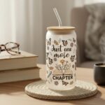 ☕ “Just One More Chapter” 16oz Frosted Glass Cup (with lid + straw + brush)