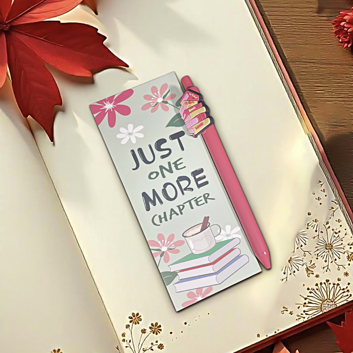 A cozy, colorful bookmark and pen duo for readers who carry stories everywhere.