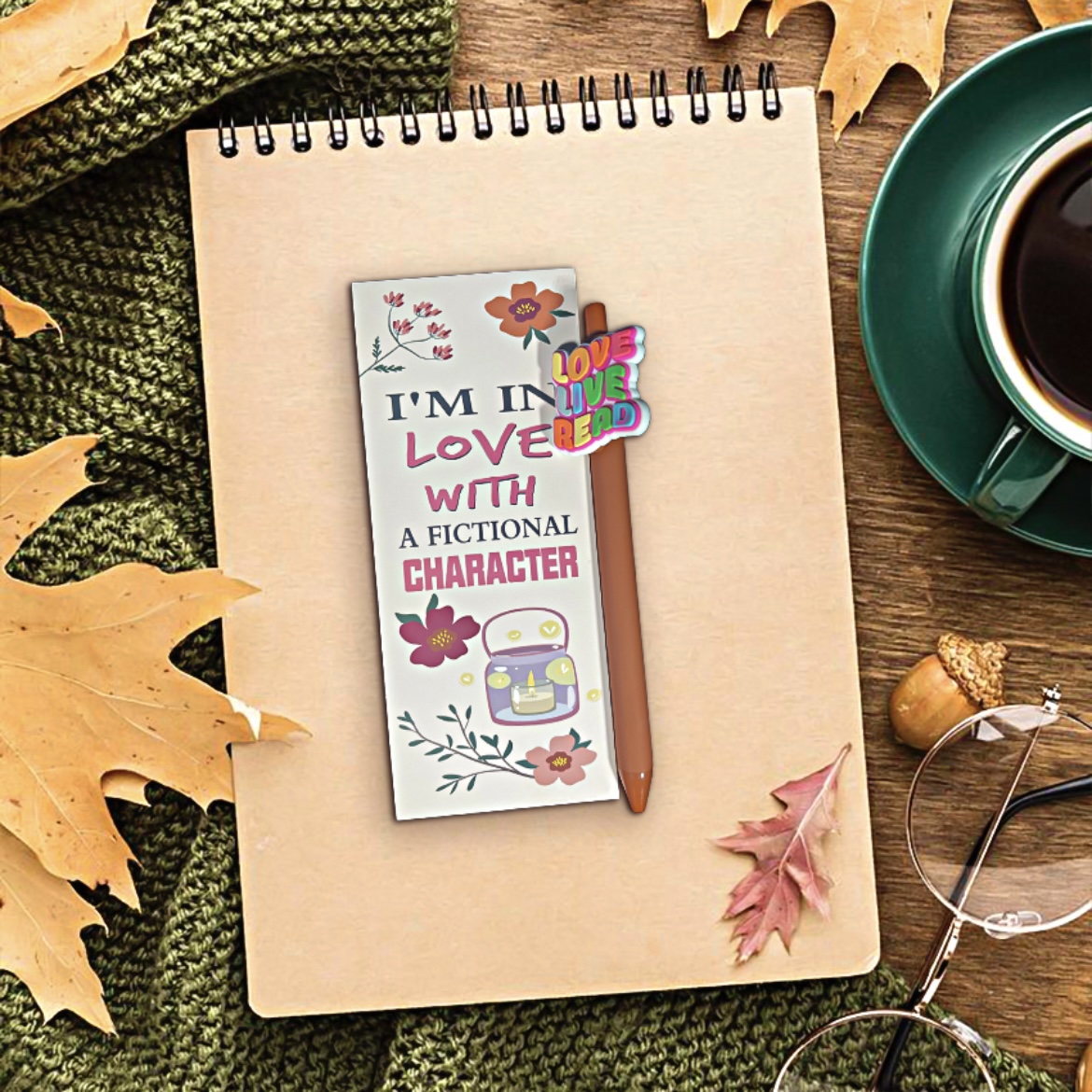 This Fictional Character Bookmark & Pen Set is for the readers whose hearts belong to characters who only exist on the page. Featuring the playful confession “I’m in Love with a Fictional Character,” this set celebrates the beautiful obsession of falling for book boyfriends, brave heroines, and unforgettable protagonists. With warm autumn florals and a whimsical potion bottle illustration, this set has a touch of fantasy magic woven into every detail.