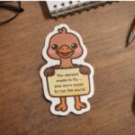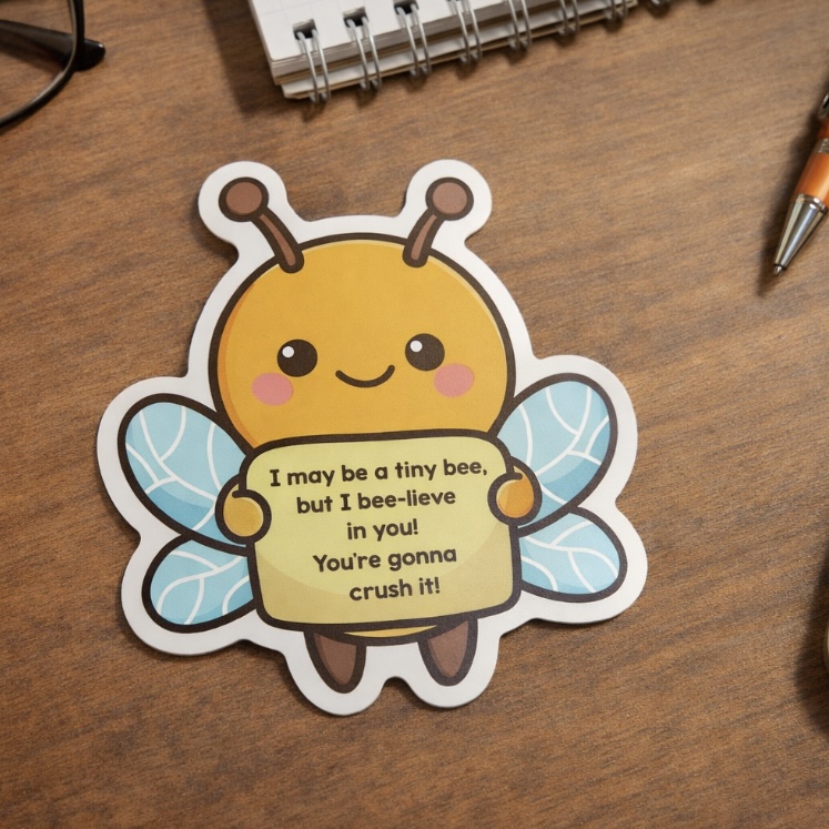 Every sticker is printed with vibrant, full-color artwork on a durable, high-quality vinyl with a smooth glossy finish that holds up on laptops, water bottles, journals, planners, phone cases, and more. Whether you stick one on your desk for a daily boost or tuck one into a care package for a friend, these little creatures carry big energy.