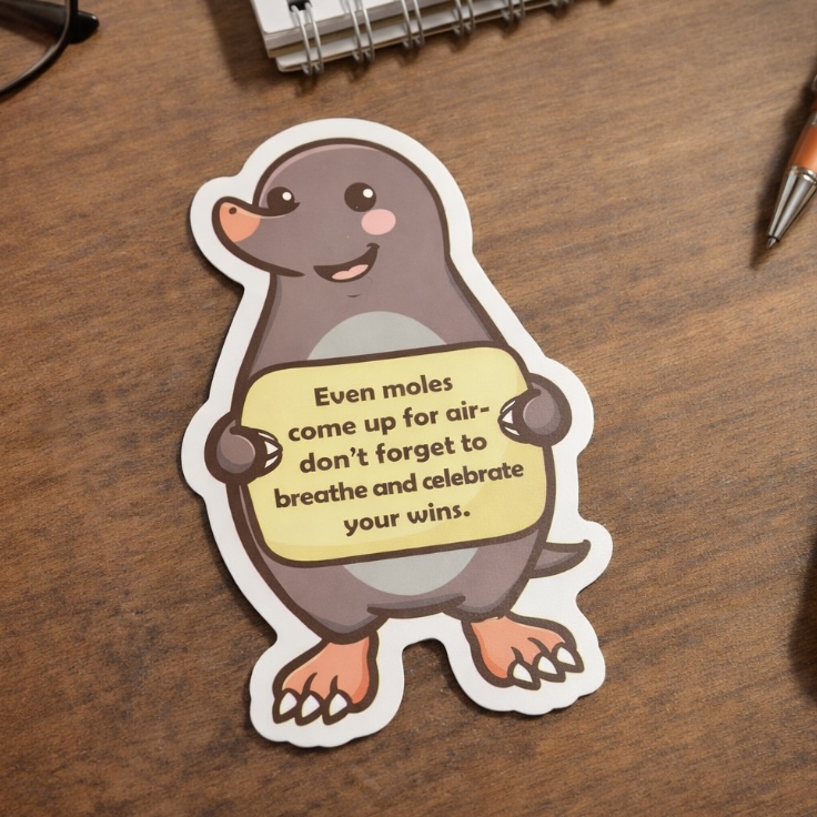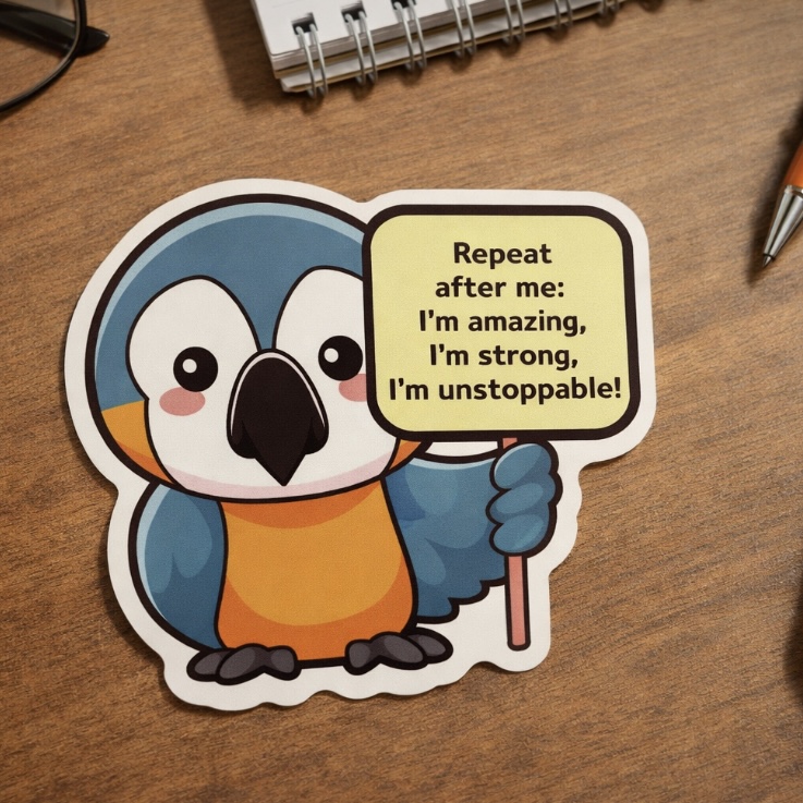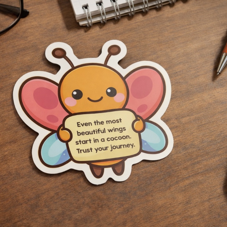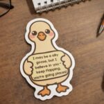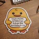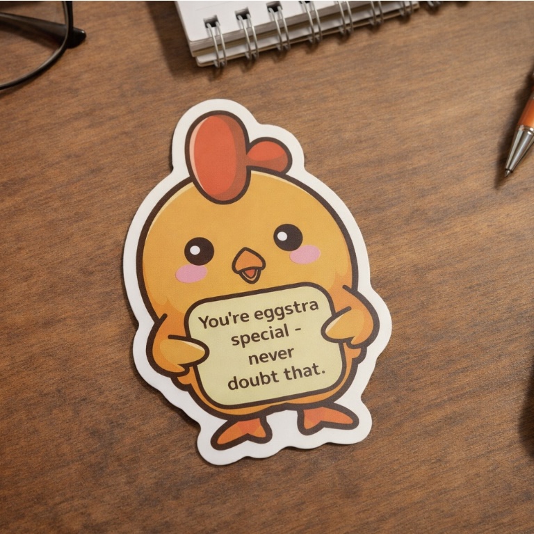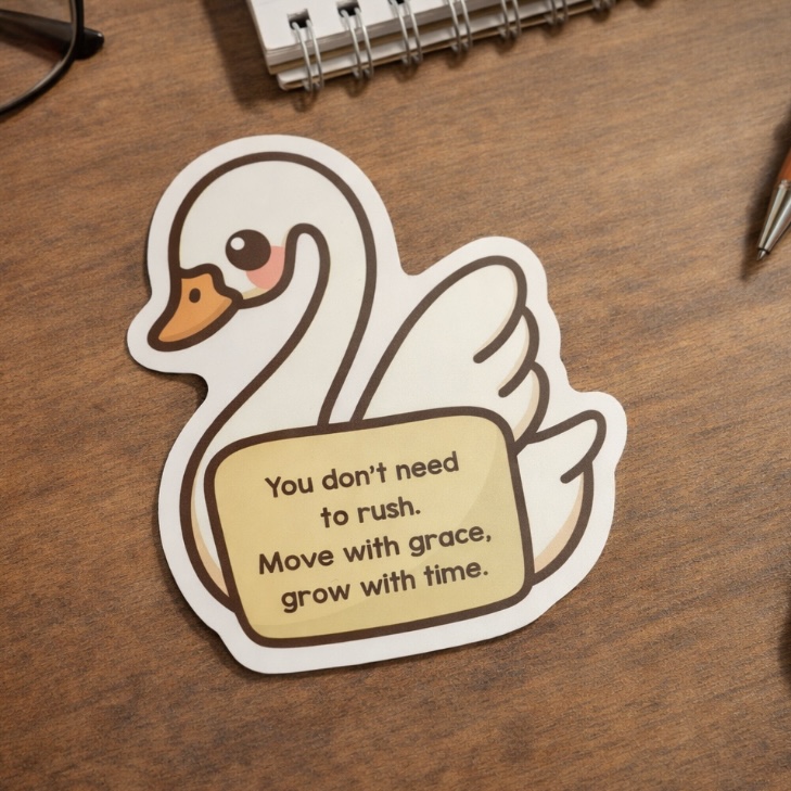Meet your new tiny cheerleaders. This collection of cute animal affirmation stickers features adorable kawaii characters — from silly geese to wise owls — each holding a heartfelt, punny message designed to make you smile, lift your spirits, and remind you that you’re doing better than you think.