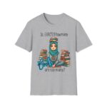 Our “So, EXACTLY how many books are too many?” unisex softstyle t-shirt celebrates bookworms of all kinds. Featuring a beautifully illustrated hijabi girl seated calmly among towering stacks of books, this tee is a tribute to curiosity, culture, and the quiet joy of reading.