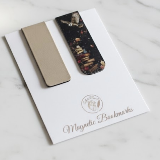 Each bookmark folds neatly over your page and secures with strong yet gentle magnets, keeping your place without slipping, tearing, or damaging pages. Slim and lightweight, they’re perfect for novels, journals, planners, textbooks, and annotated reads alike.