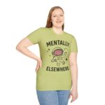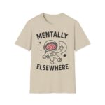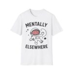 Our “Mentally Elsewhere” unisex softstyle t-shirt captures the perfect mood for overthinkers, introverts, and space dreamers alike. Featuring a floating astronaut with a brain for a helmet, this tee blends humor, mental health, and cosmic vibes into one unforgettable design.