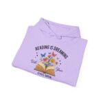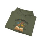 Our “Reading Is Dreaming with Your Eyes Open” Hoodie brings warmth and inspiration to every book lover’s wardrobe. Featuring an open book bursting with colorful flowers and butterflies, this design beautifully captures the feeling of stories coming to life.